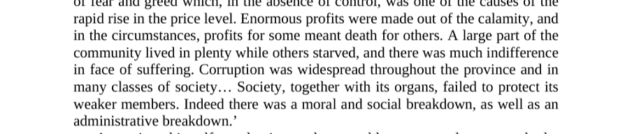 Then comes the description of the british administration, i.e., how they acted and reacted in miserable conditions of famines in those days.